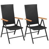 Les chaises sont faites de resine tressee de haute qualite, qui est durable et resistante aux intemperies. Les cadres en aluminium enduit de poudre rendent les chaises tres robustes. Les accoudoirs en WPC de couleur marron s'ajoutent au look elegant des chaises. Les dossiers des chaises disposent de 7 positions d'inclinaison, ce qui vous permet de toujours trouver la position d'assise la plus confortable. Les chaises peuvent etre pliees pour economiser de l'espace lorsqu'elles ne sont pas utilisees. L'assemblage est facile.