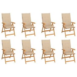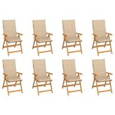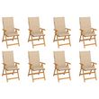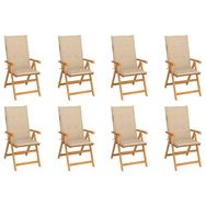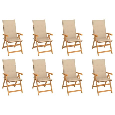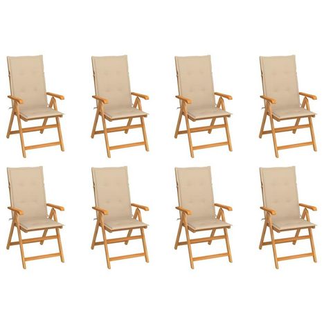 Chaises inclinables de jardin et coussins lot de 8 Teck solide