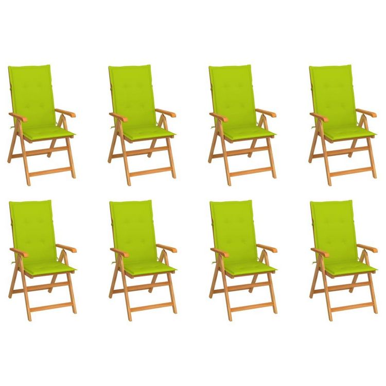 Chaises inclinables de jardin et coussins lot de 8 Teck solide