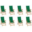 Chaises inclinables de jardin et coussins lot de 8 Teck solide