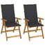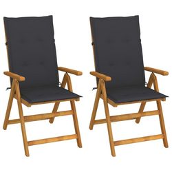 Chaises inclinables de jardin lot de 2 et coussins Bois acacia
