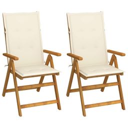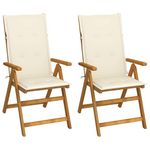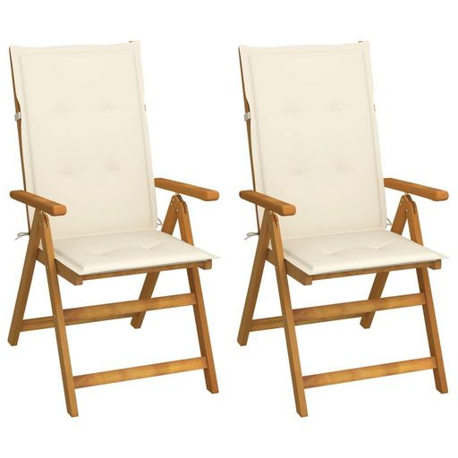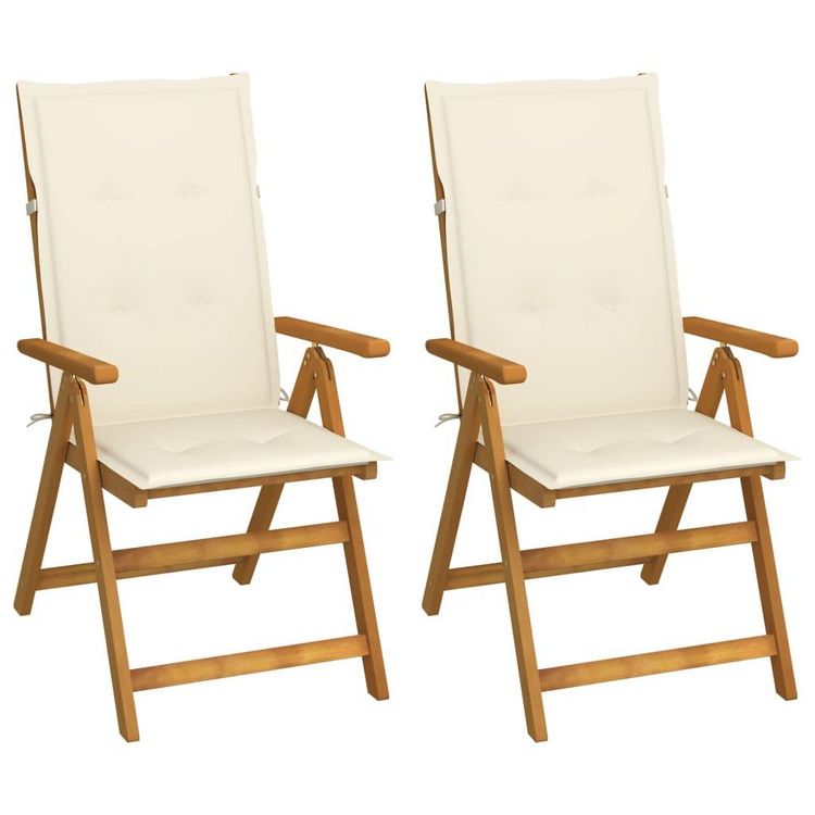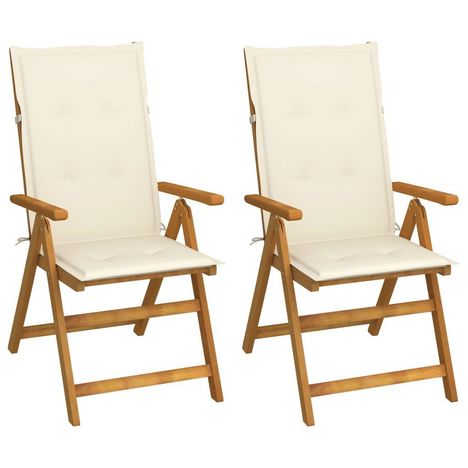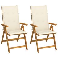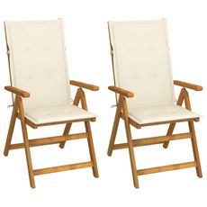 Chaises inclinables de jardin lot de 2 et coussins Bois acacia