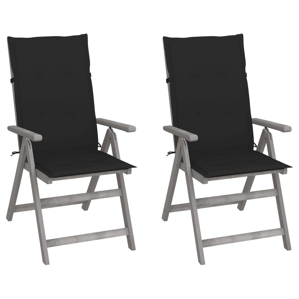 Chaises inclinables de jardin lot de 2 et coussins Bois acacia