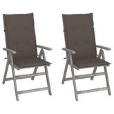 Chaises inclinables de jardin lot de 2 et coussins Bois acacia