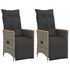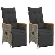 Chaises inclinables de jardin lot de 2 et coussins gris rotin
