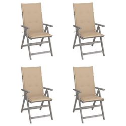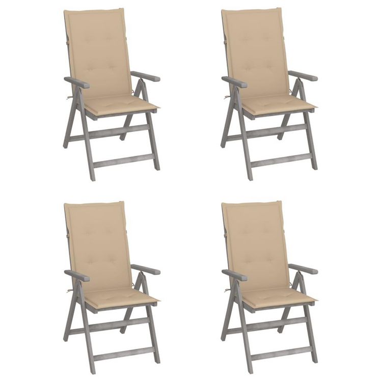 Chaises inclinables de jardin lot de 4 et coussins Bois acacia