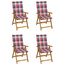 Chaises inclinables de jardin lot de 4 et coussins Bois acacia