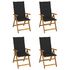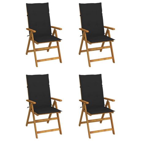 Chaises inclinables de jardin lot de 4 et coussins Bois acacia