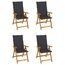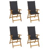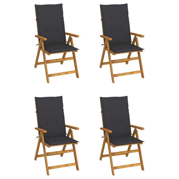 Chaises inclinables de jardin lot de 4 et coussins Bois acacia