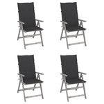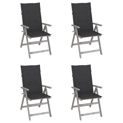Chaises inclinables de jardin lot de 4 et coussins Bois acacia