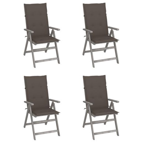 Chaises inclinables de jardin lot de 4 et coussins Bois acacia
