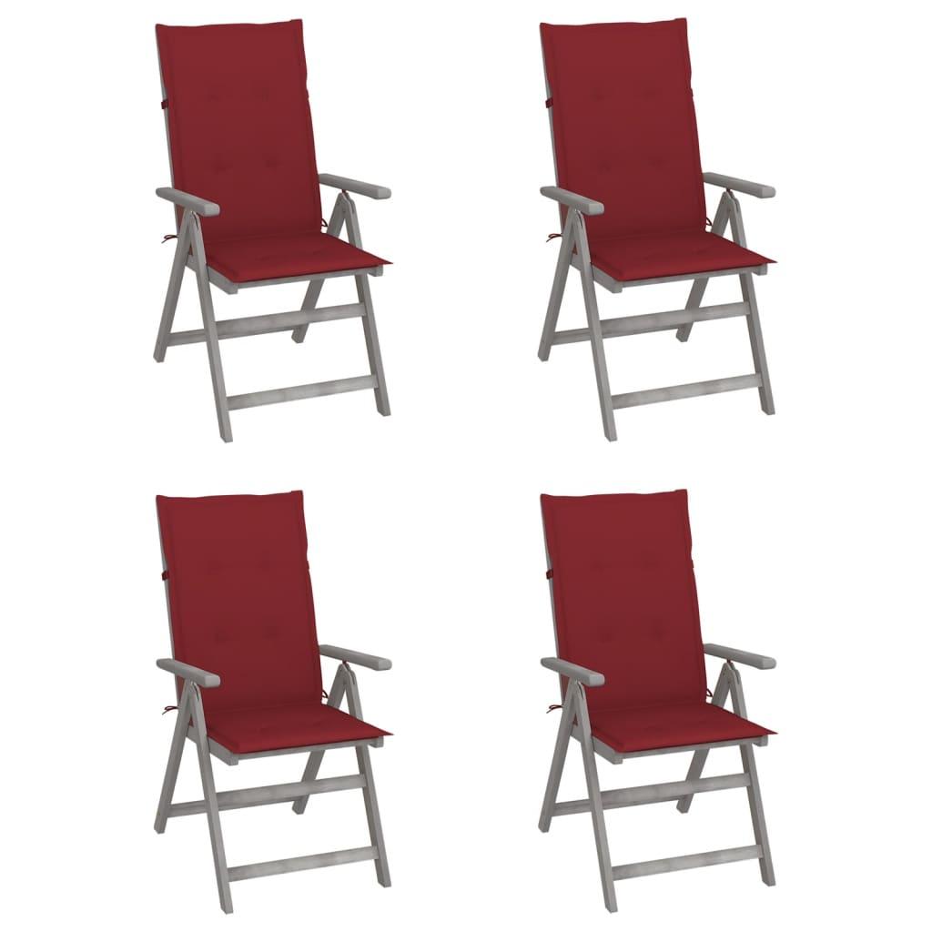 Chaises inclinables de jardin lot de 4 et coussins Bois acacia
