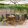 Detendez-vous et profitez de l'exterieur dans ces confortables chaises de jardin inclinables ! Robuste et stable : le bois d'acacia massif est connu pour sa solidite et sa durabilite. Ses couleurs variees et ses grains uniques lui conferent un aspect attrayant. Sa stabilite et sa resistance aux inte