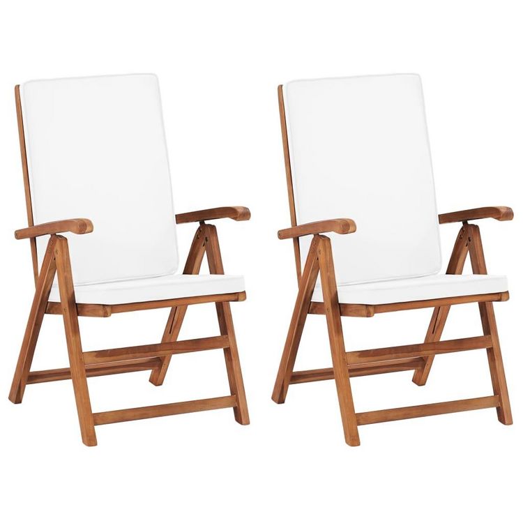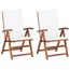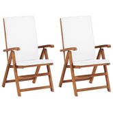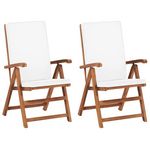 Chaises inclinables lot de 2 avec coussins Teck solide Creme