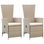 Chaises inclinables lot de 2 et coussins Resine tressee Beige