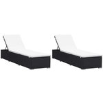 Chaises longues avec coussins lot de 2 Resine tressee Noir