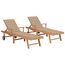 Chaises longues lot de 2 avec coussin beige Bois de teck solide