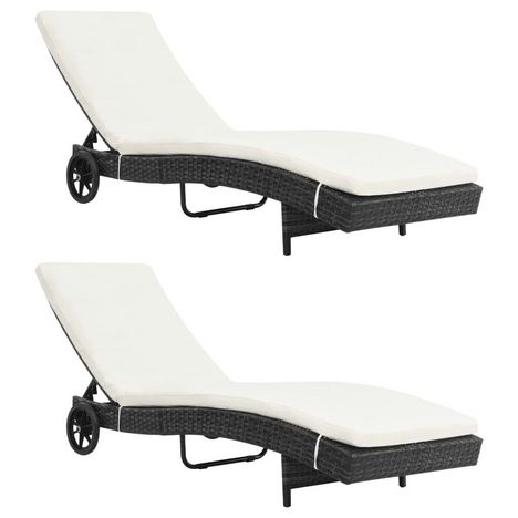 Chaises longues lot de 2 avec roues et coussins Resine tressee