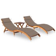 Chaises longues lot de 2 avec table et coussins Acacia solide