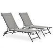 Cet ensemble de chaises longues allie style et fonctionnalite et est un excellent supplement a votre jardin ou a tout autre espace exterieur.