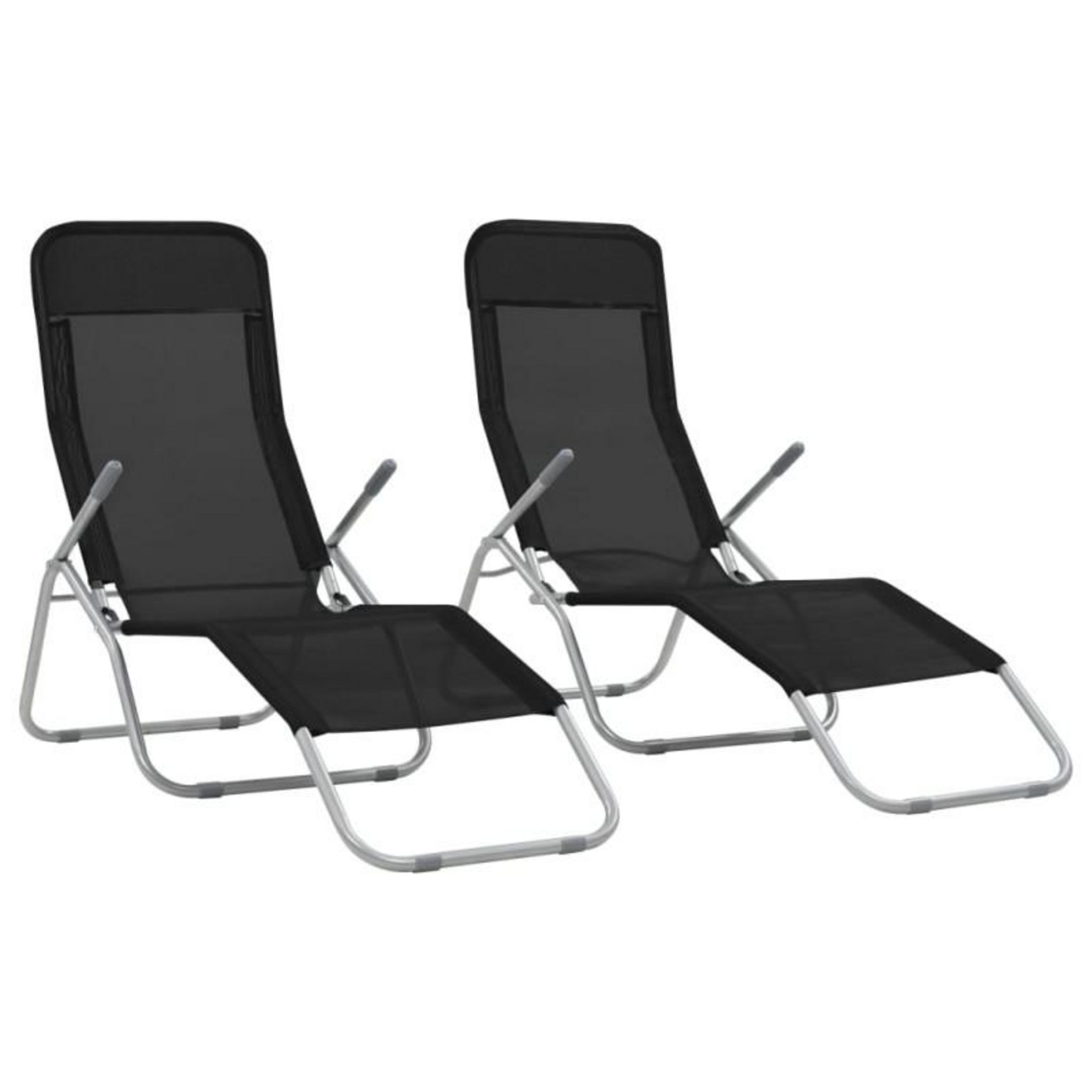 Les chaises longues pliables de la marque VIDAXL, référence 44338, sont conçues avec un cadre robuste en acier enduit de poudre, associé à un tissu en textilène. Ce matériau combiné offre une structure solide tout en assurant un confort optimal grâce à sa surface en textilène. Le design noir élégant s'intègre parfaitement dans tout décor extérieur.
