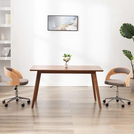 Chaises pivotantes a manger lot de 2 taupe bois courbe et tissu