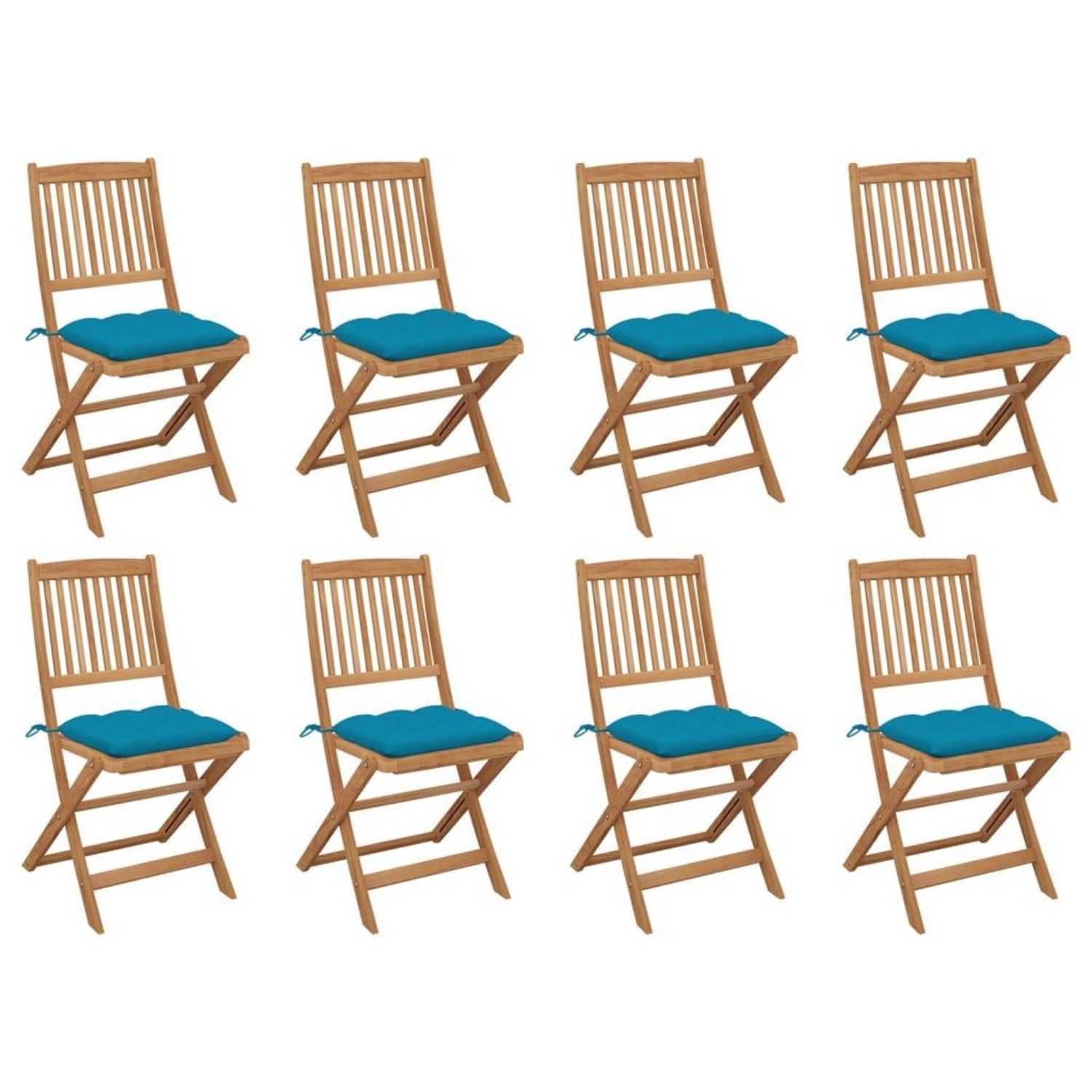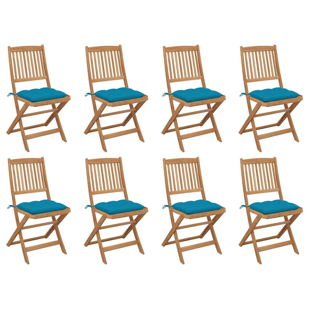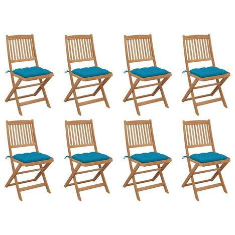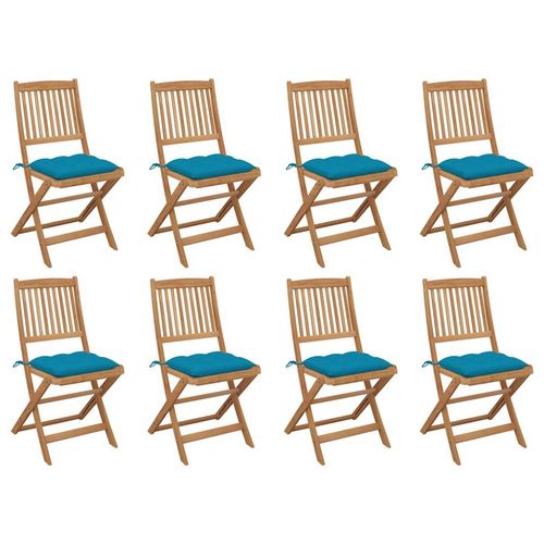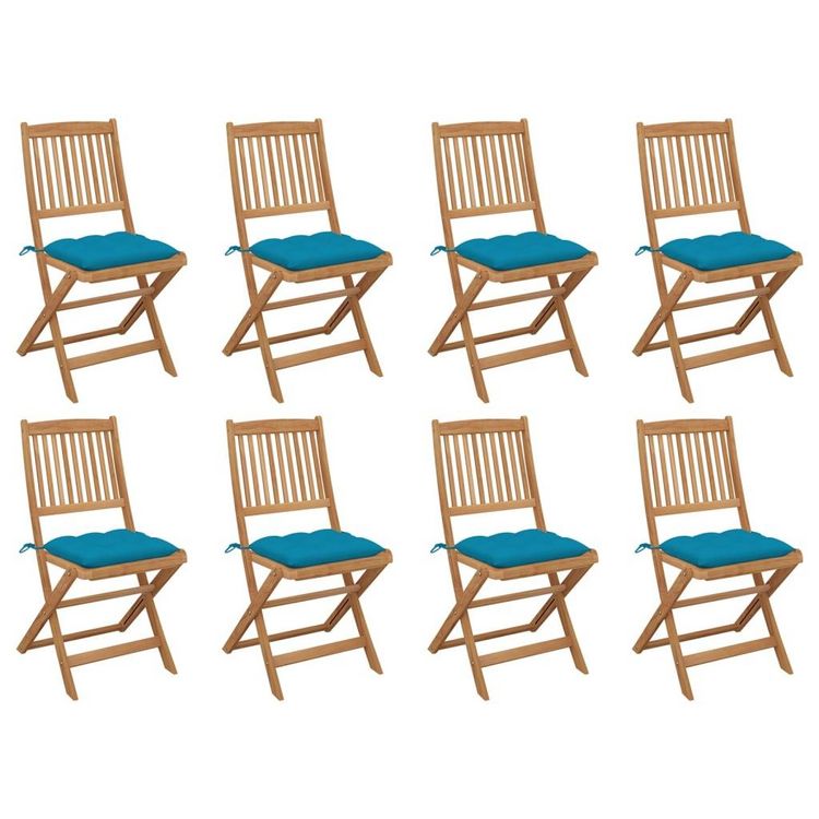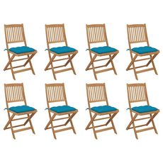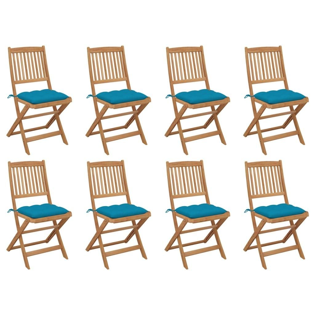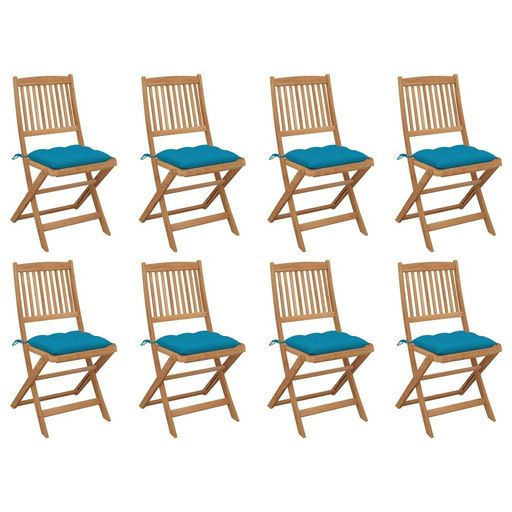 Chaises pliables d'exterieur et coussins lot de 8 Bois d'acacia