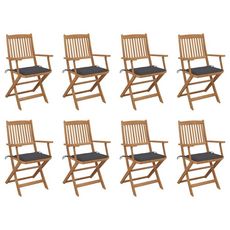 Chaises pliables d'exterieur et coussins lot de 8 Bois d'acacia