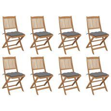Chaises pliables d'exterieur et coussins lot de 8 Bois d'acacia