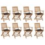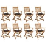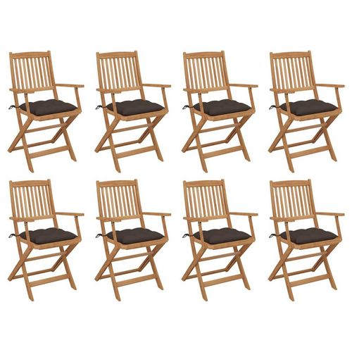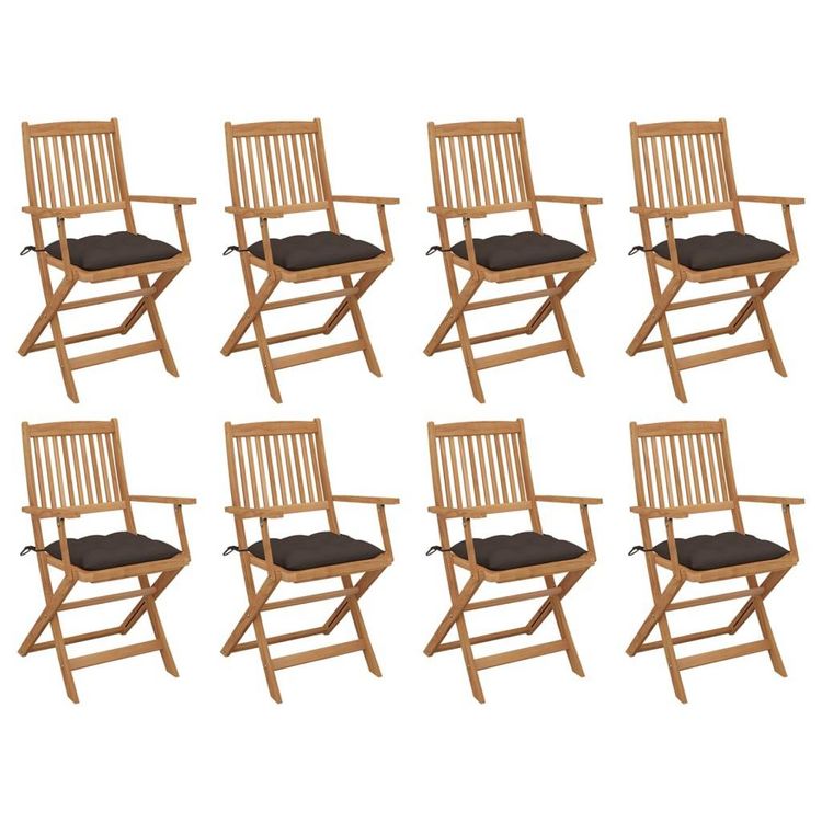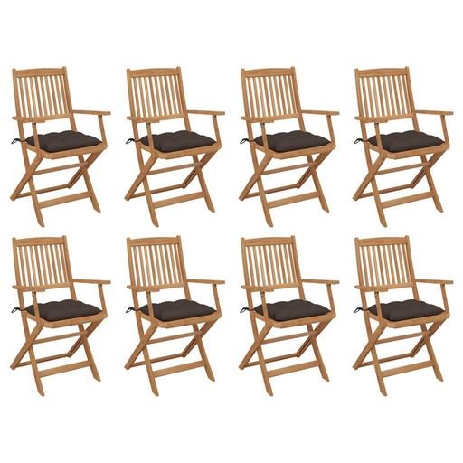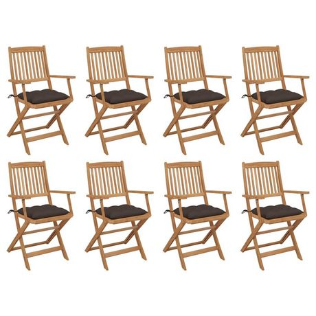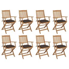 Chaises pliables d'exterieur et coussins lot de 8 Bois d'acacia
