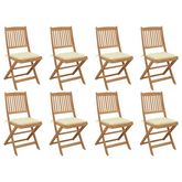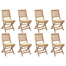 Chaises pliables d'exterieur et coussins lot de 8 Bois d'acacia