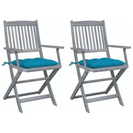 Chaises pliables d'exterieur lot de 2 et coussins Bois d'acacia