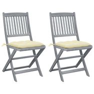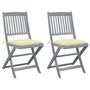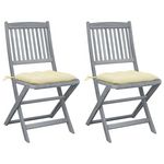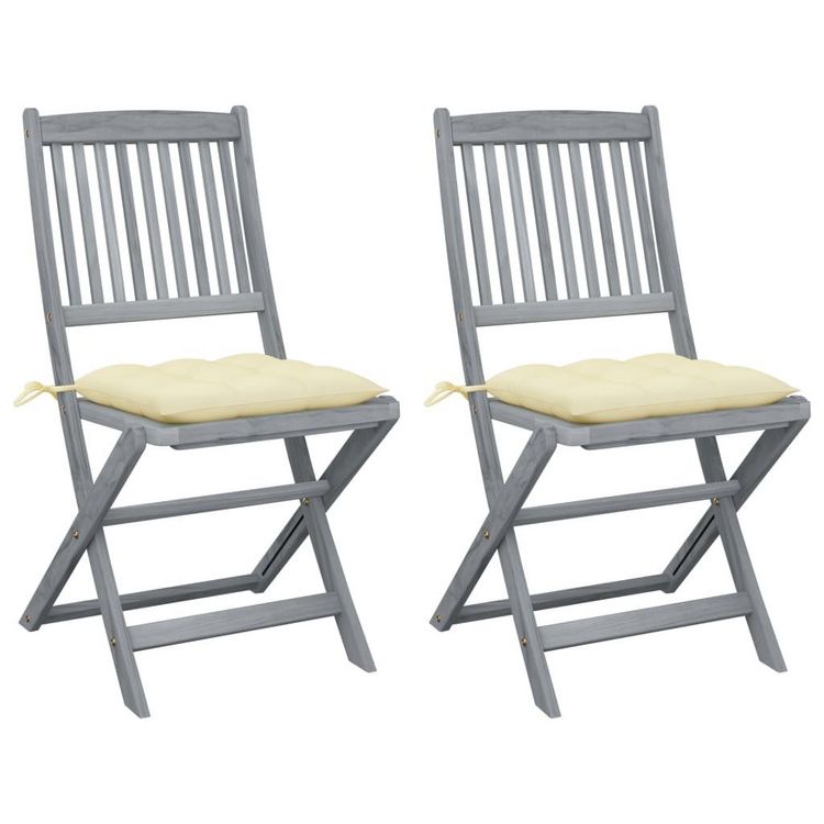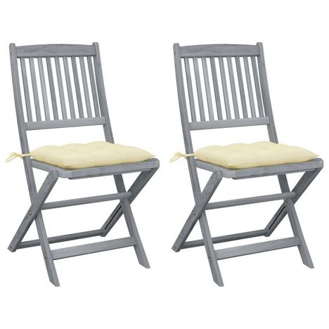 Chaises pliables d'exterieur lot de 2 et coussins Bois d'acacia