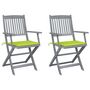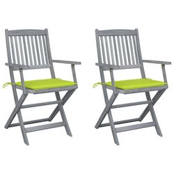 Chaises pliables d'exterieur lot de 2 et coussins Bois d'acacia