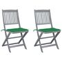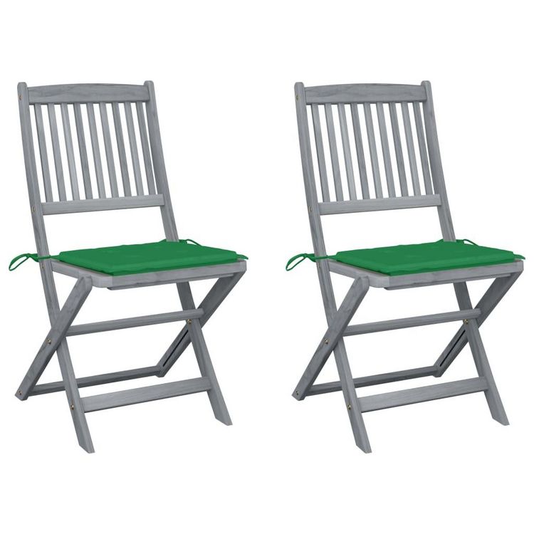 Chaises pliables d'exterieur lot de 2 et coussins Bois d'acacia