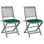 Chaises pliables d'exterieur lot de 2 et coussins Bois d'acacia