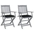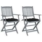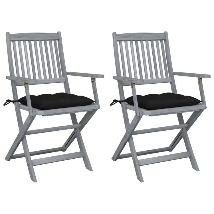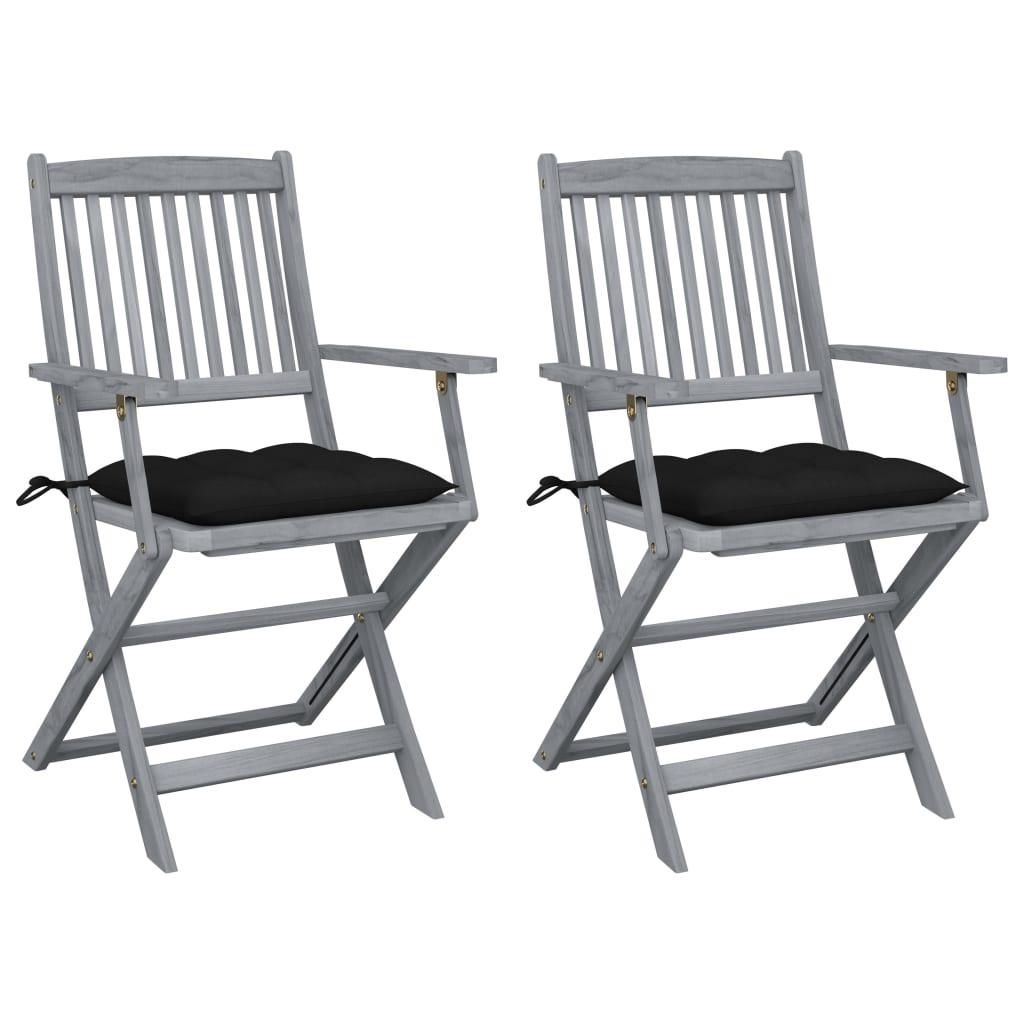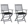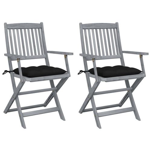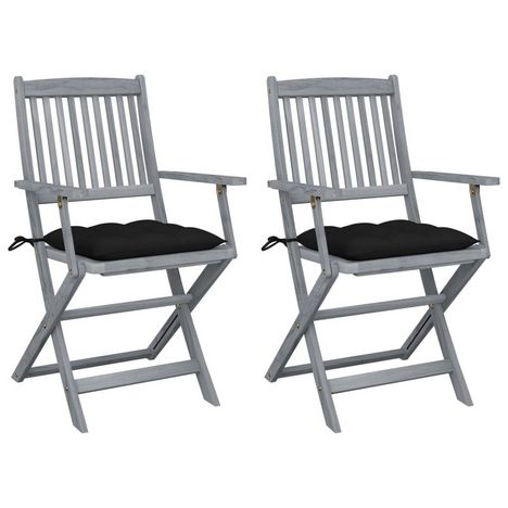 Chaises pliables d'exterieur lot de 2 et coussins Bois d'acacia