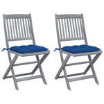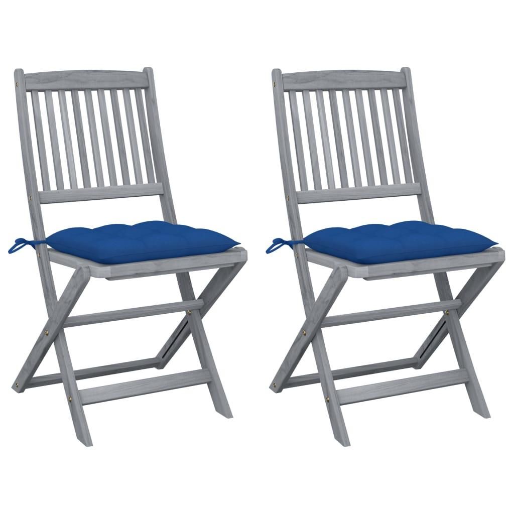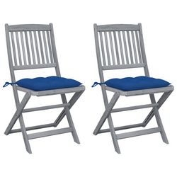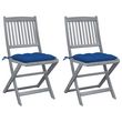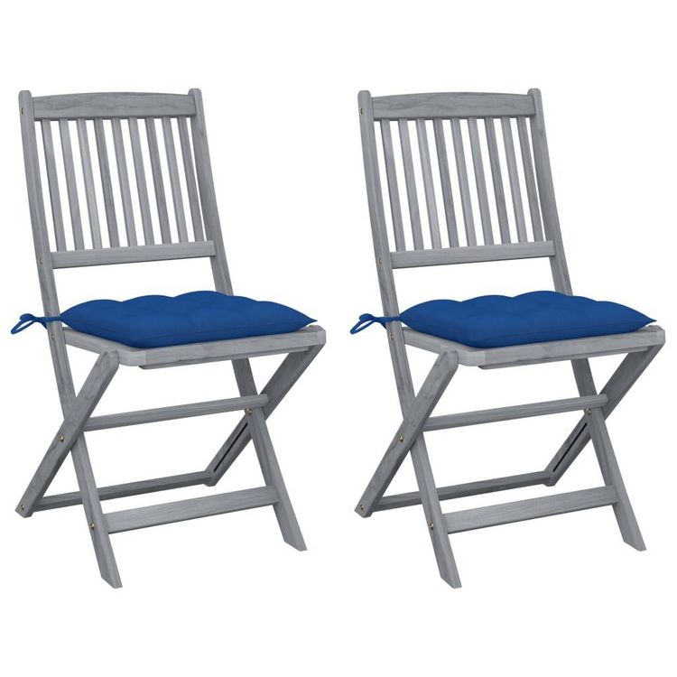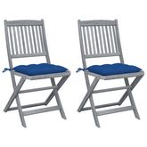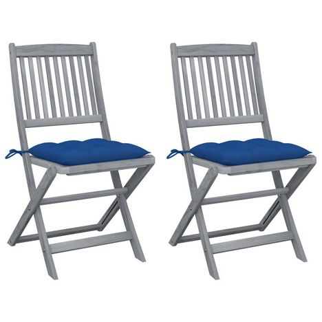 Chaises pliables d'exterieur lot de 2 et coussins Bois d'acacia