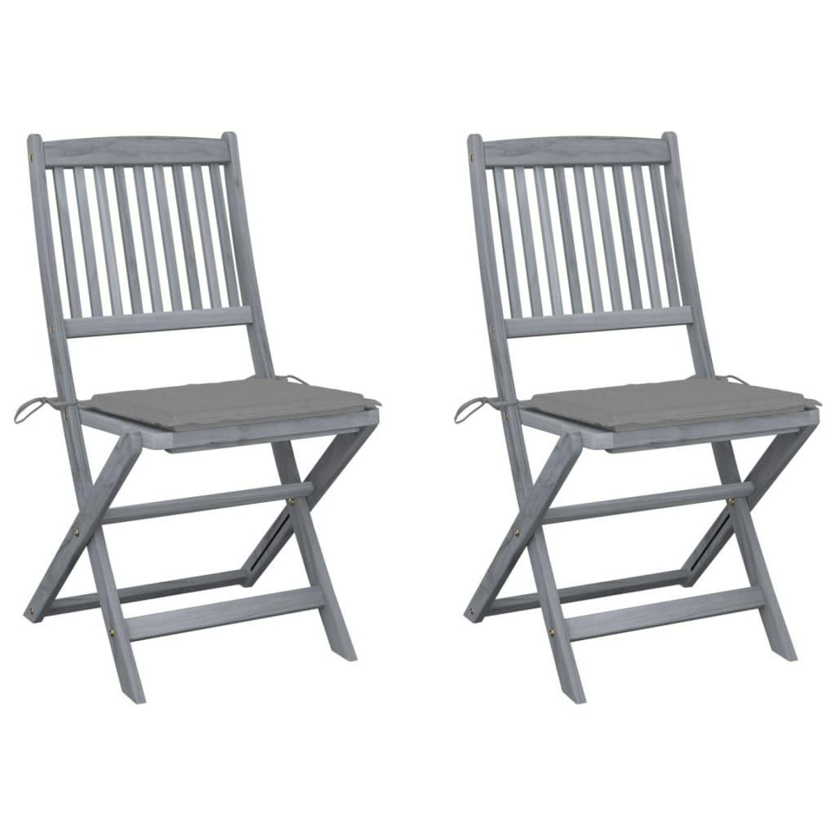 Ces chaises de salle a manger sont faites de bois d'acacia massif, un bois dur tropical, les rendant resistantes aux intemperies et durables pour des annees d'utilisation. Le bois d'acacia massif a la force de soutenir le poids et de resister a l'usure du temps. La surface grise delavee est facile a nettoyer avec un chiffon humide. Les chaises peuvent etre repliees pour economiser de l'espace lorsqu'elles ne sont pas utilisees. De plus, les coussins inclus offrent un confort supplementaire lors des moments de detente ou des repas. Chaque coussin comporte deux ensembles de cordes pour le fixer fermement a la chaise.