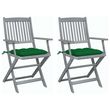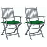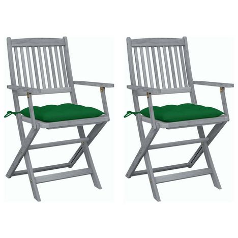 Chaises pliables d'exterieur lot de 2 et coussins Bois d'acacia