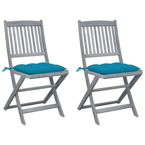 Chaises pliables d'exterieur lot de 2 et coussins Bois d'acacia
