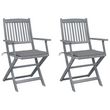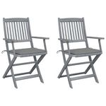 Chaises pliables d'exterieur lot de 2 et coussins Bois d'acacia