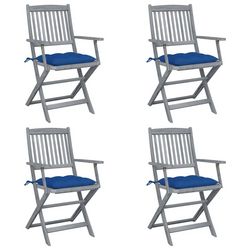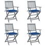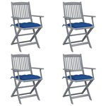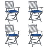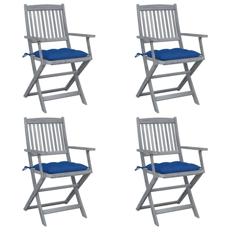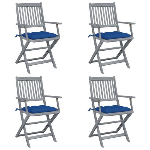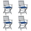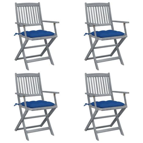 Chaises pliables d'exterieur lot de 4 et coussins Bois d'acacia
