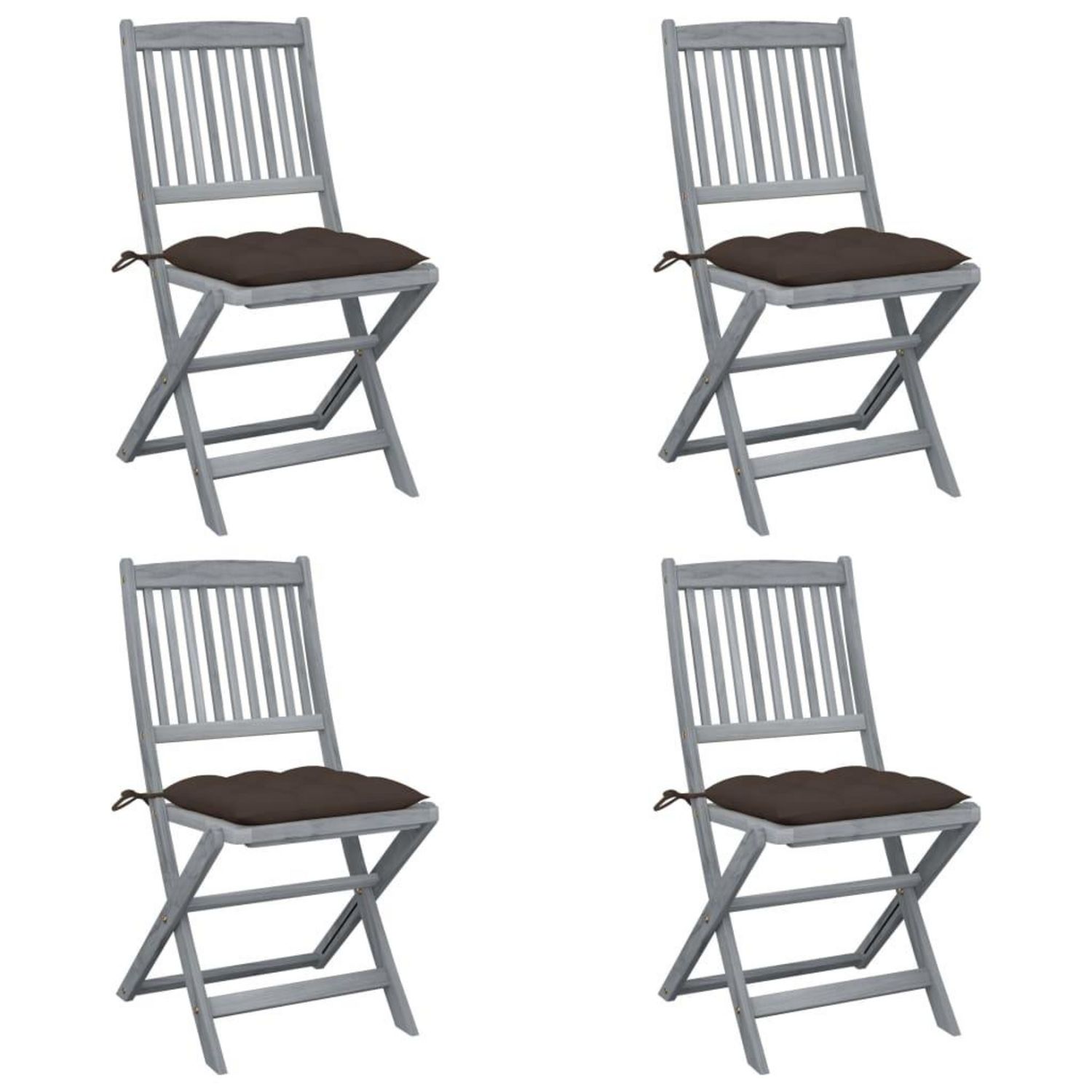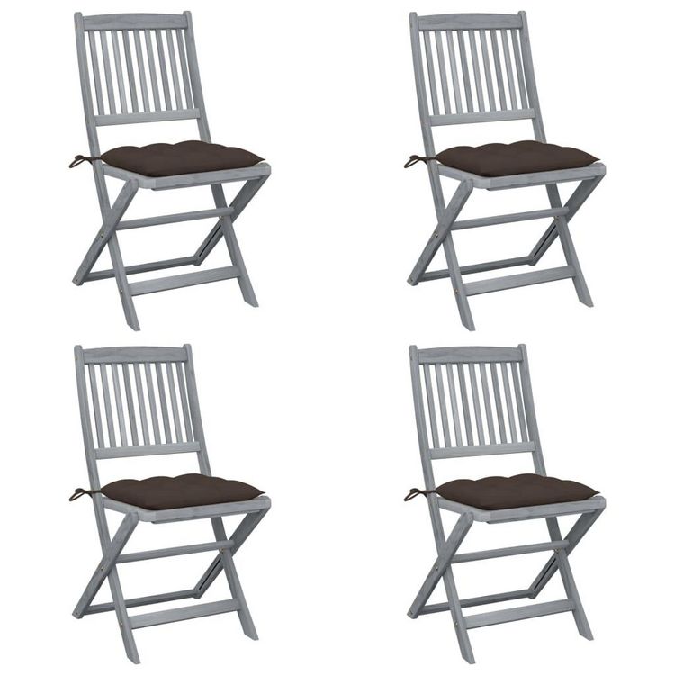Chaises pliables d'exterieur lot de 4 et coussins Bois d'acacia