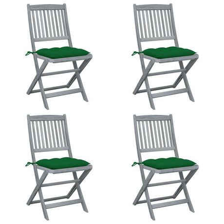 Chaises pliables d'exterieur lot de 4 et coussins Bois d'acacia