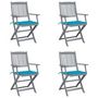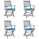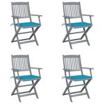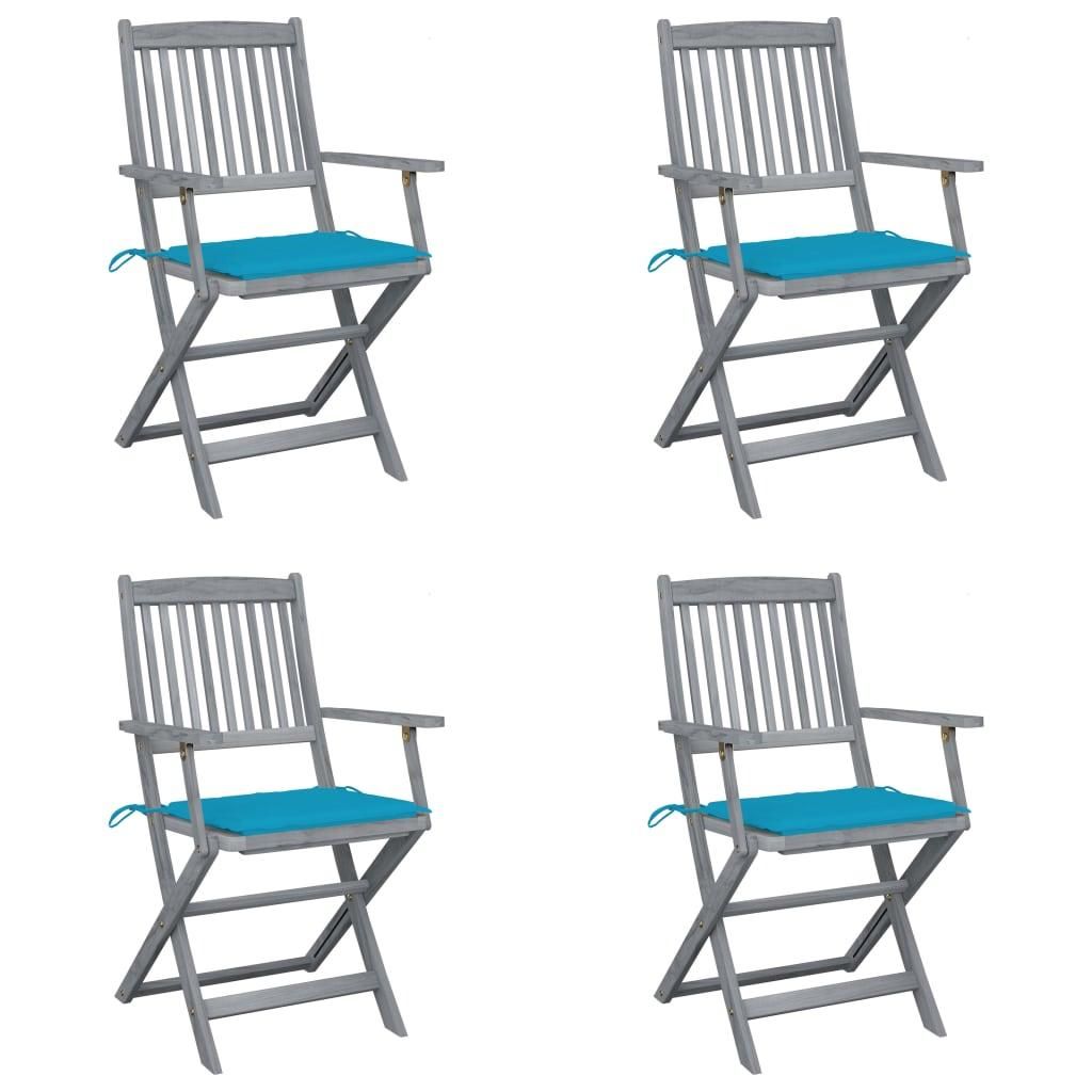 Chaises pliables d'exterieur lot de 4 et coussins Bois d'acacia