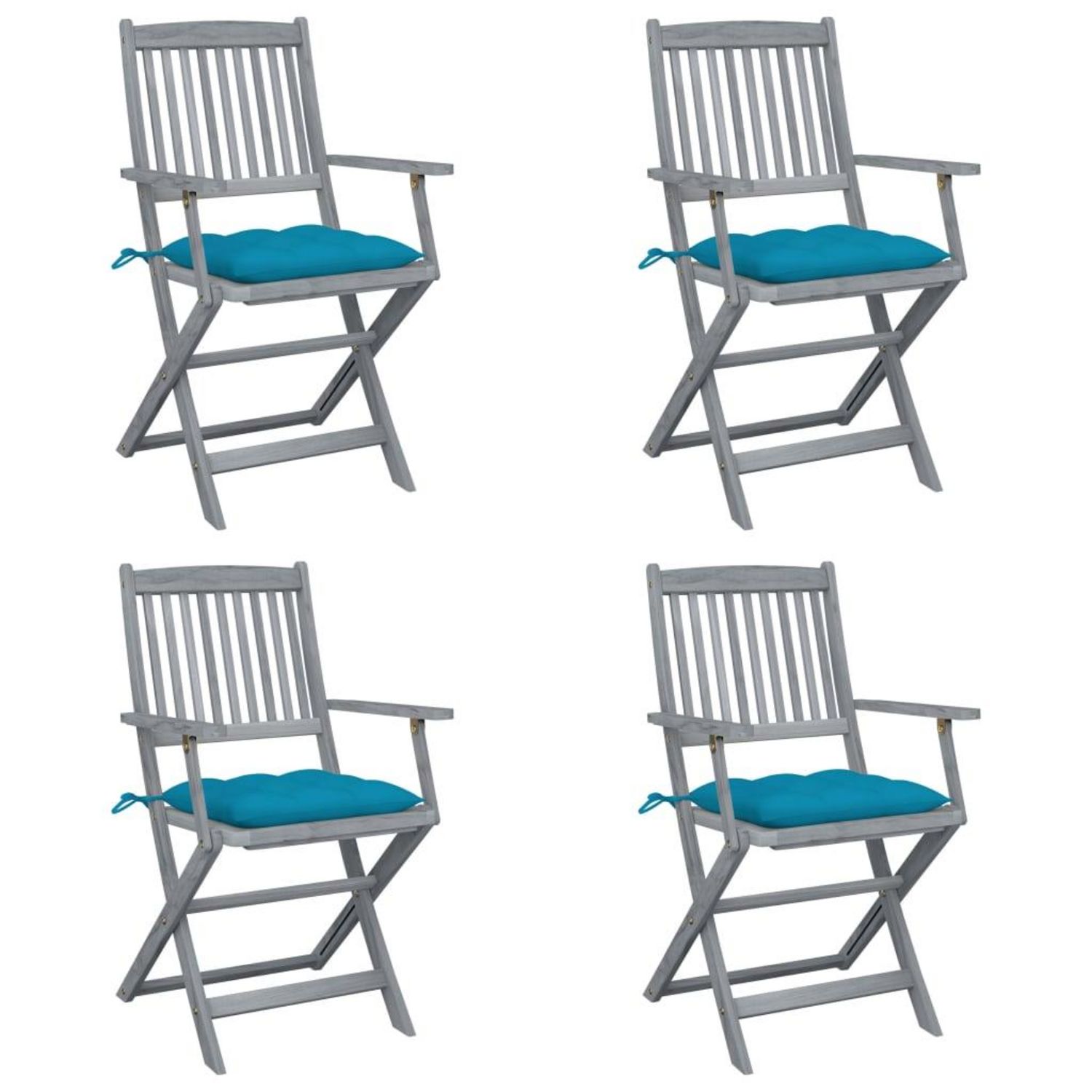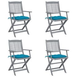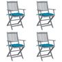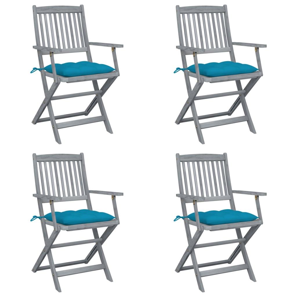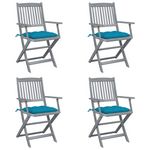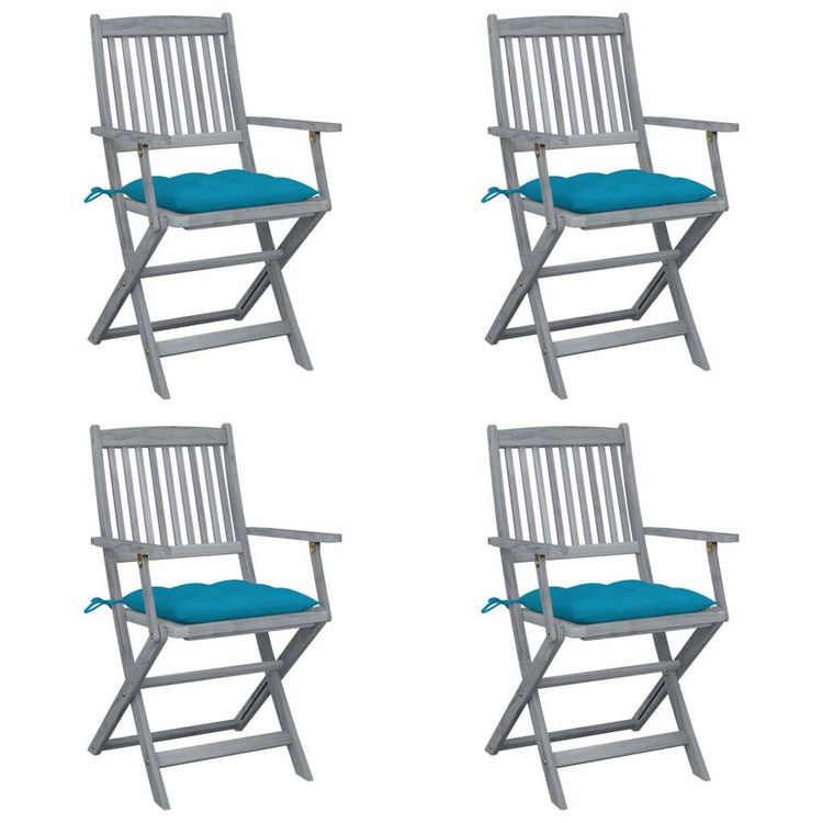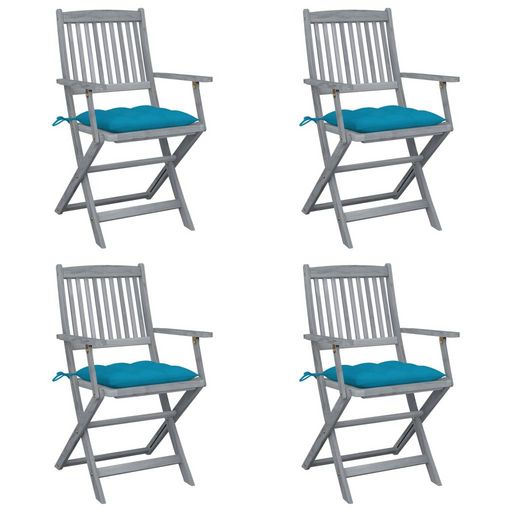 Chaises pliables d'exterieur lot de 4 et coussins Bois d'acacia