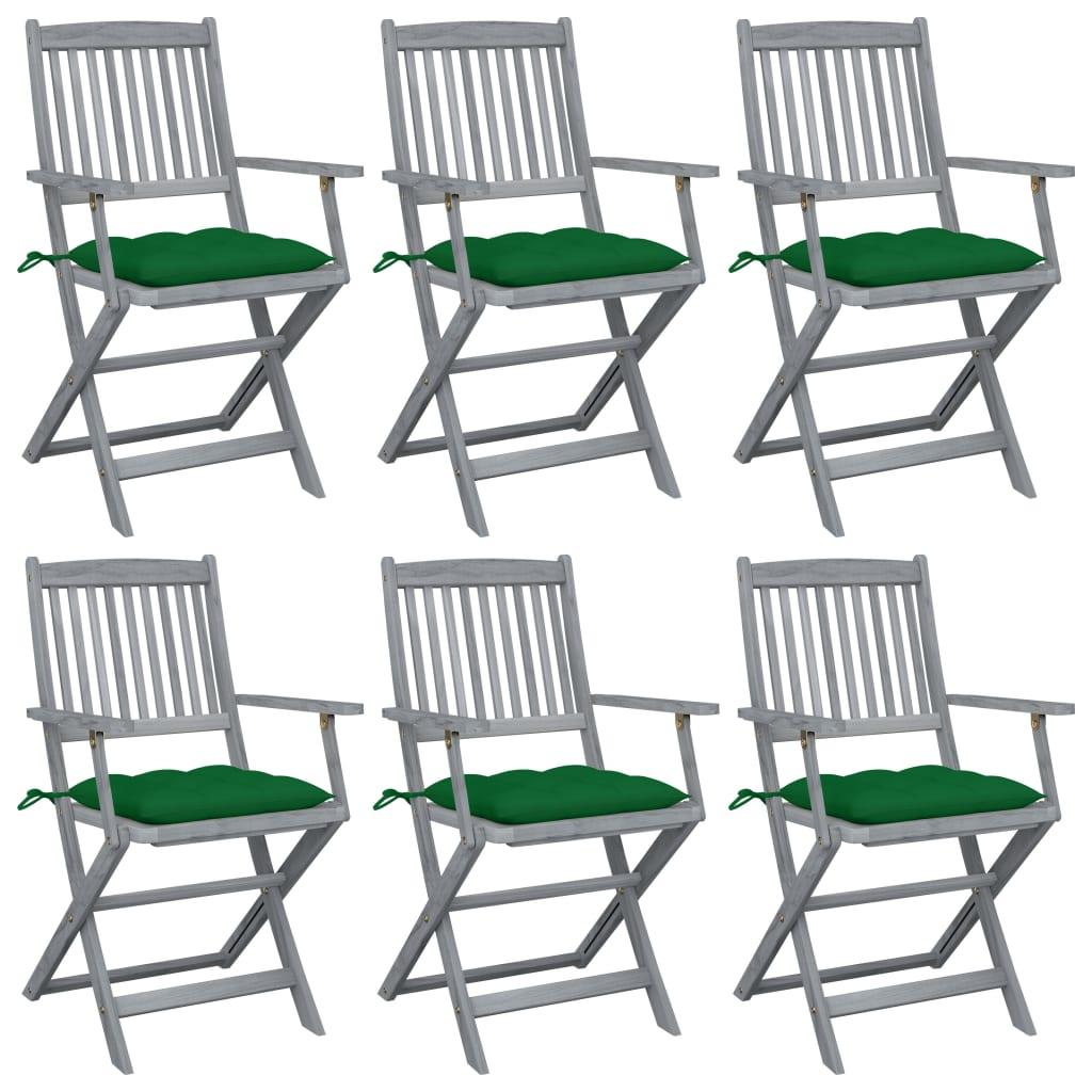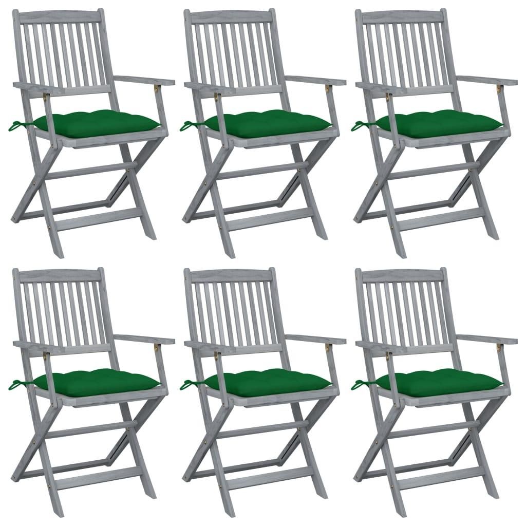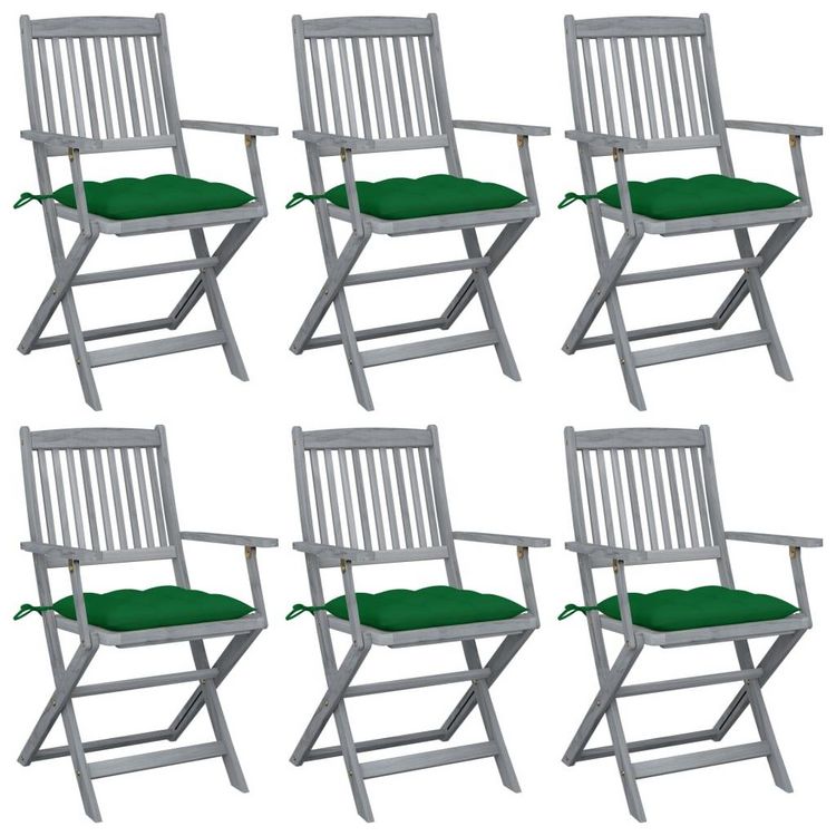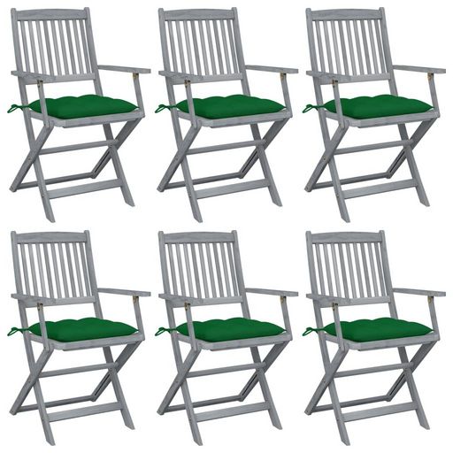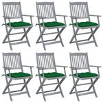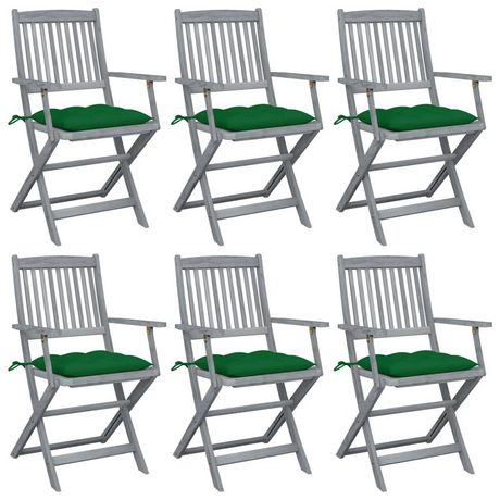 Chaises pliables d'exterieur lot de 6 et coussins Bois d'acacia