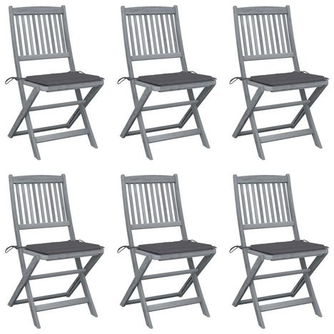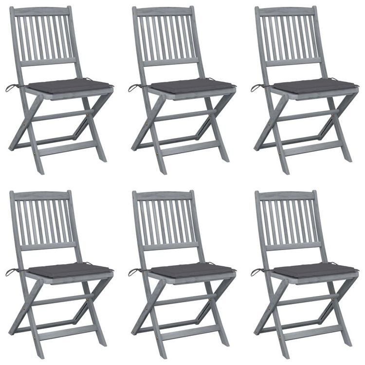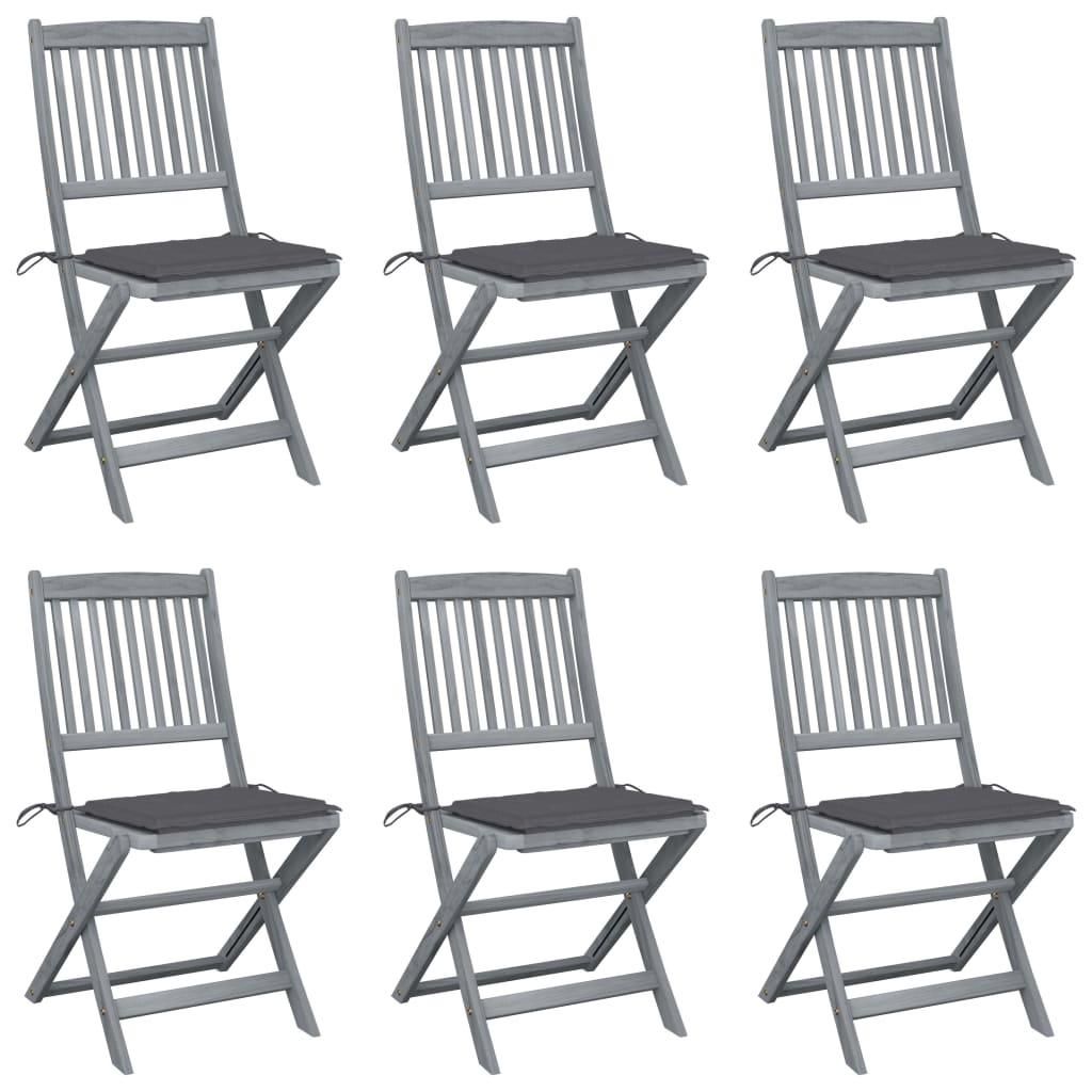 Chaises pliables d'exterieur lot de 6 et coussins Bois d'acacia