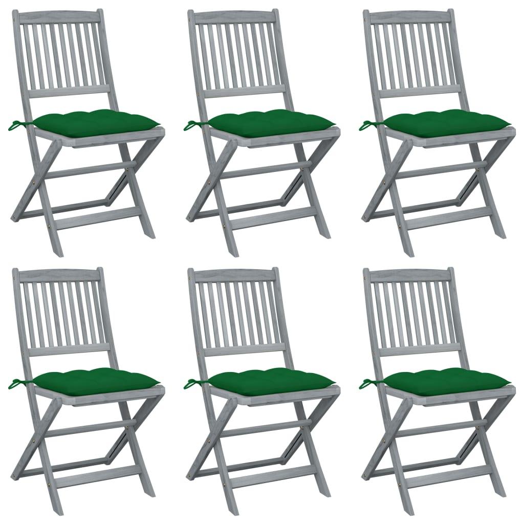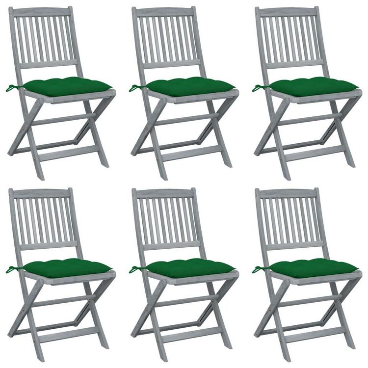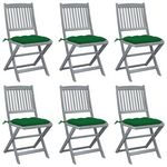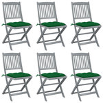 Chaises pliables d'exterieur lot de 6 et coussins Bois d'acacia